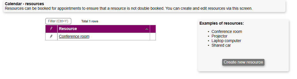 Example of resources could be meeting/conference rooms, technical equipment, vehicles etc.