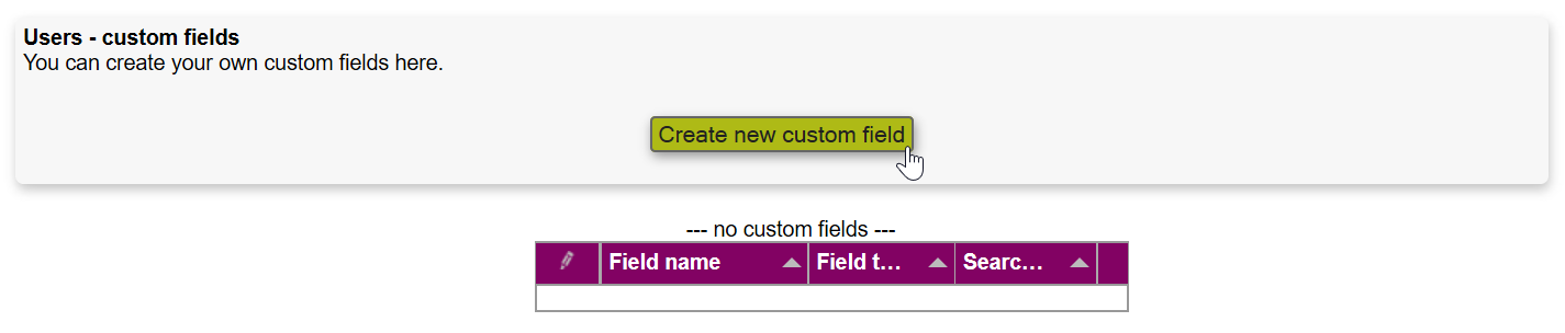 Choose SETTINGS > CUSTOM FIELDS in the top menu. The existing custom fields are listed; to create a new custom field, click the "Create new custom field" button.