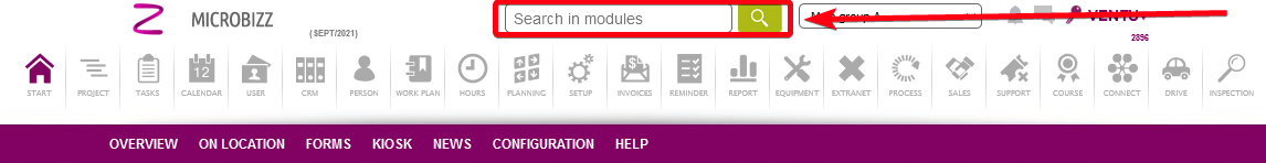 The search bar on the top of the page of your Microbizz solution, is the global search.