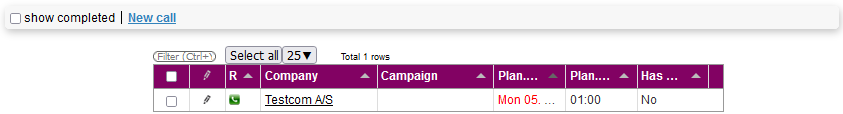 In order to complete calls, you have to make them first. In order to do so, you have to click on the green telephone icon. This will direct you to the call in theSales module.