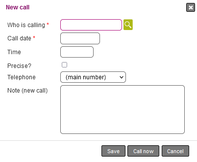 You can either save the call with the Save button or make the call immediately with the Call now button.