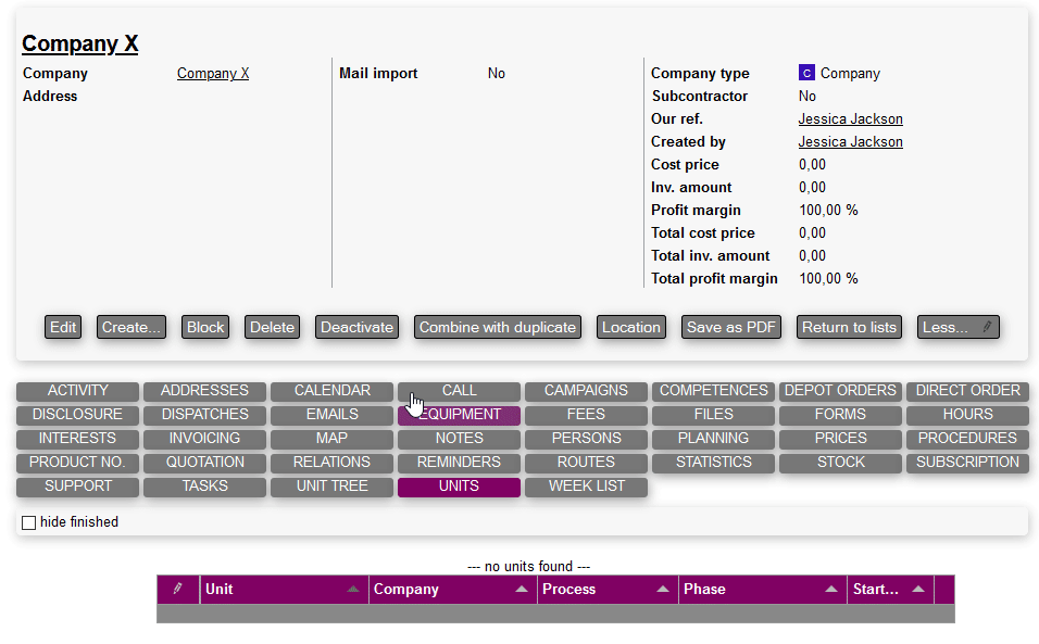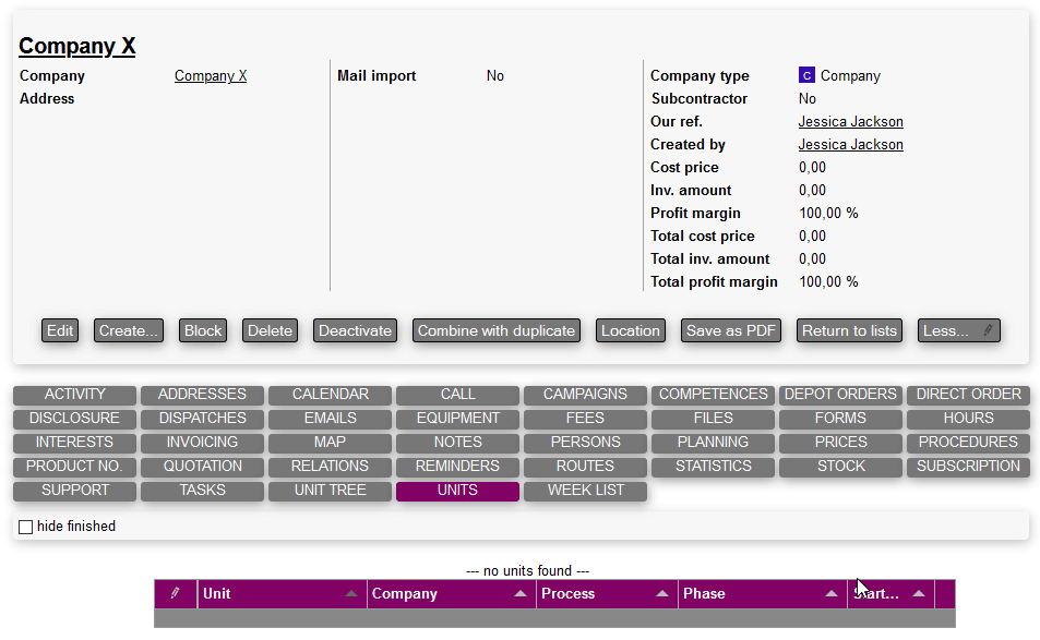 A company is accessed through a search or creation in your system, or from links on a task card or from any other object that is linked to a company.