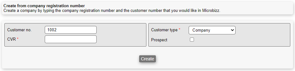 - Create via CVR = This will create a customer through the CVR integration (works only in Denmark)