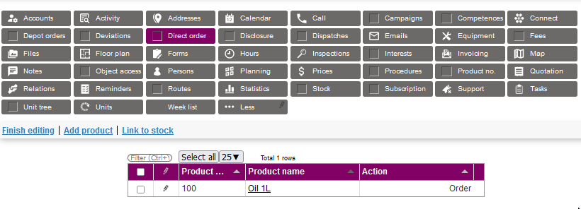 You can then add additional products and amounts to the already present ones, but it's worth to note, that adding as such, isn't saved to the direct order form.