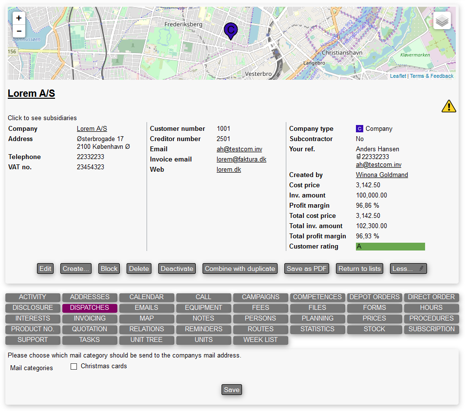 The dispatches tab gives the ability to send mails to persons within companies at once. For example promotions, greetings etc.