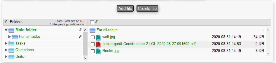 - Copy files to another object: Create duplicates of the selected files, but save the duplicates on another task / company / equipment /etc.