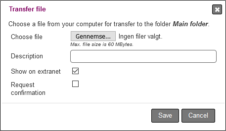 - Request confirmation: When the file is shown on the extranet, it can ask for approval (this is only available if enabled by Ventu)