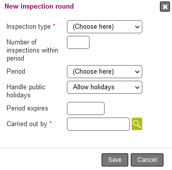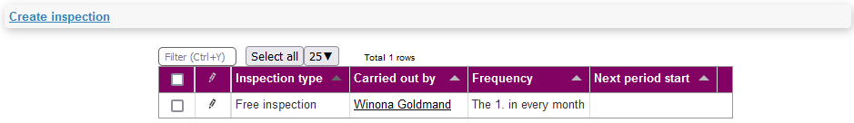 This tab shows you an overview of inspections for the chosen company. You can also create new inspections for the company
