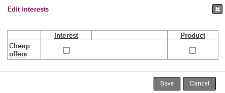 Afterwards, press the Edit interests button, where you will be able to mark the line as an interest and/or a product, that the chosen company has: