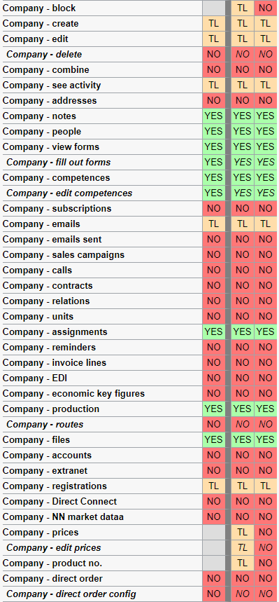 - Company - week list: Allows you to specify who has access to the "Week List" tab on companies