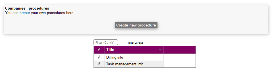To create a new procedure, press Create new procedure button.