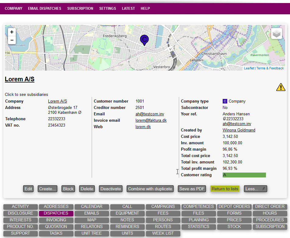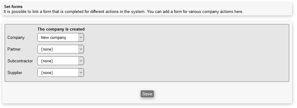 When creating a company, it's possible for the system to request a form to be completed. This is setup from the menu SETTINGS > SET FORMS.