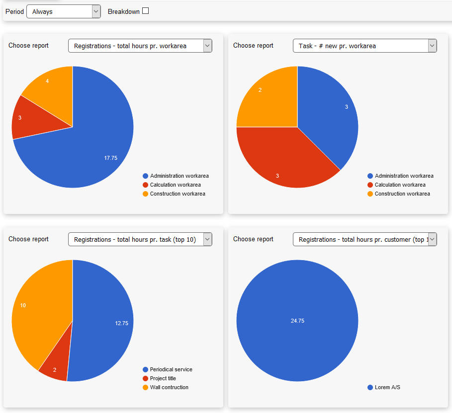 The statistics/reports tab has the single purpose of showing mini reports regarding different type of data.