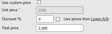 Use price from "Company XX": Toggle if the system should use price from the product catalogue or the company specific individual price