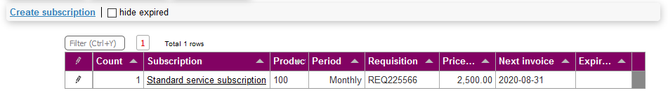 Subscriptions are used to manage periodical invoices that automatically run for as long as they are required. The subscriptions are invoiced nightly when they reach the next invoice date.