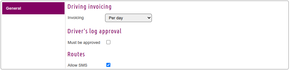 - Must be approved: This determines if the driver's log must be approved; when a log is closed a reminder is sent to relevant team leader to remind them to approve the log.