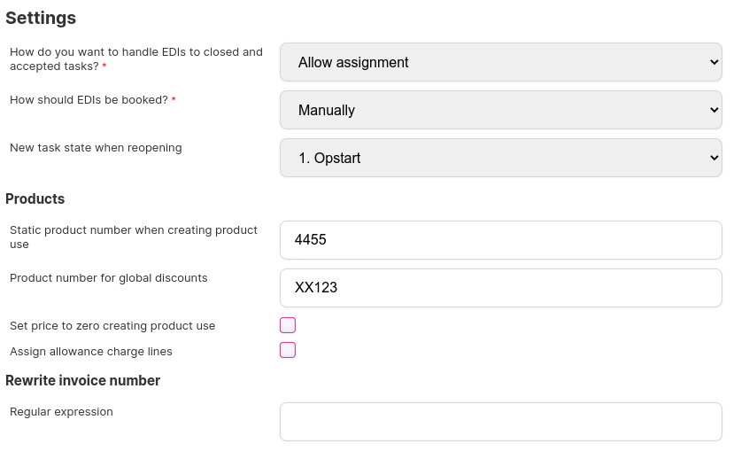 Here you can determine the task state to use when reopening a task, see “EDIs on accepted tasks” above.