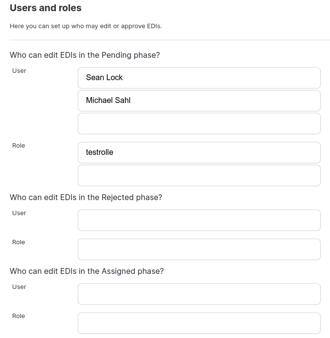 This section allows you to configure which users and roles may edit EDIs in the various states.