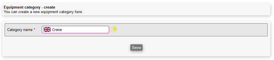 To create a new equipment category, simply click the 'New equipment category'-button.