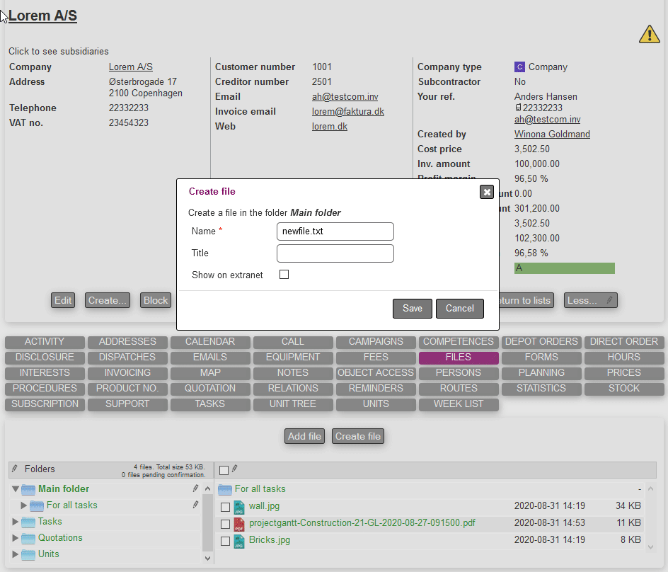 - Shared: (Works only on companies) Choose this option to show the folder on all tasks created on this customer. The folder will be shown as a virtual folder