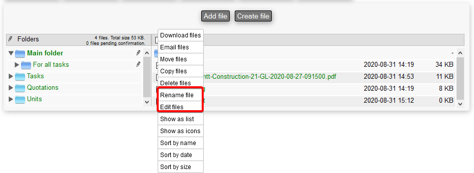 To edit existing files, we firstly need to select the ones we would like to interact with and then press the pencil above the right side.