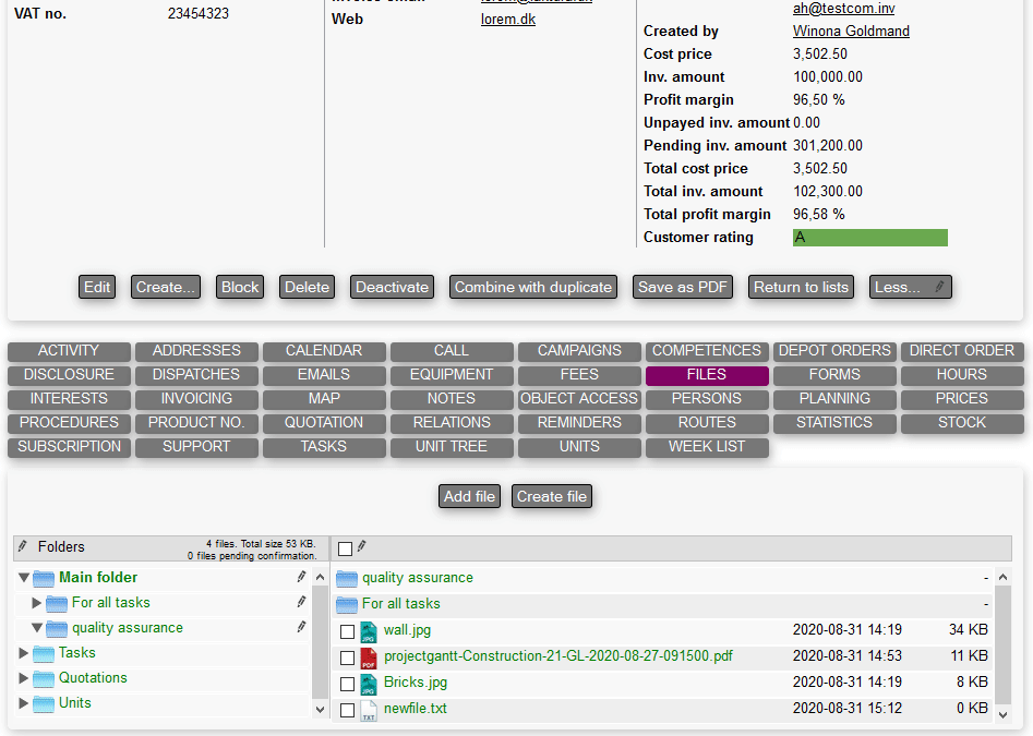 - Copy files to another object: Create duplicates of the selected files, but save the duplicates on another task / company / equipment /etc.