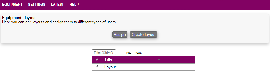 Layout for equipment is in the menu SETTINGS/LAYOUT.