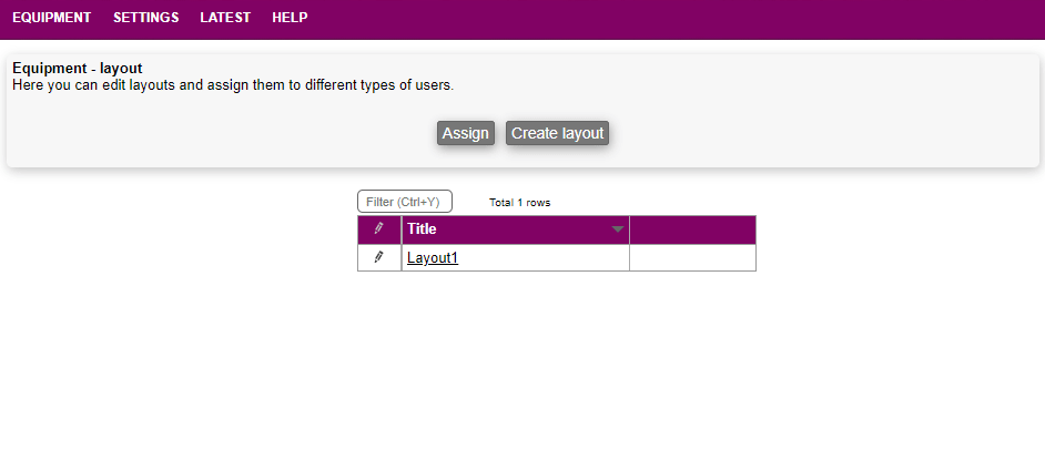 Layout is a functionality used in various modules, including equipment.