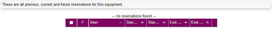 In this tab, you get an overview of all the reservations (if any) that an equipment had, currently has or will have.