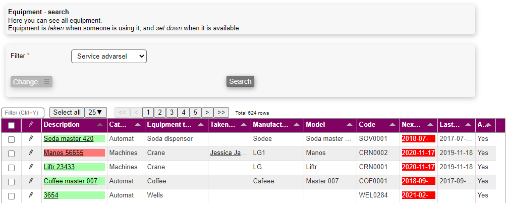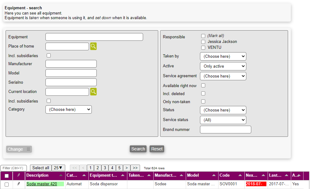 Another way to locate a specific equipment in Microbizz is via the equipment search function.