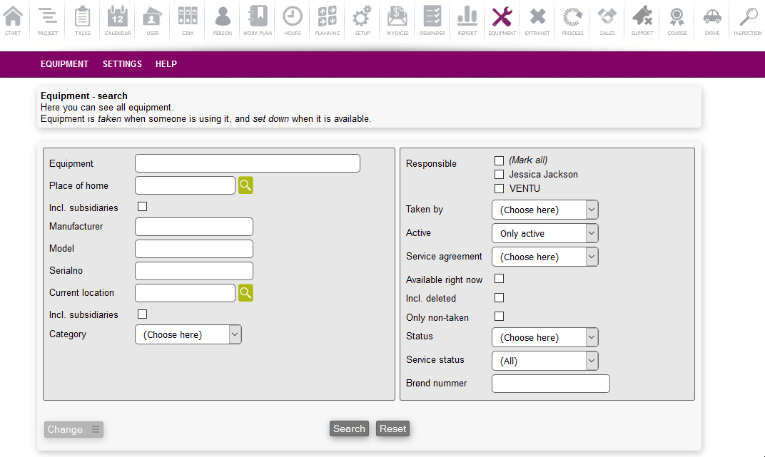 Equipment types is a way to organize your equipment in Microbizz. If no types are created, you may not get the full use and possibilities with the module. Types are especially important when wanting to use the equipment module to perform service. This could be service for anything from a crane, a vehicle, a hammer etc.