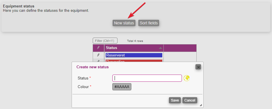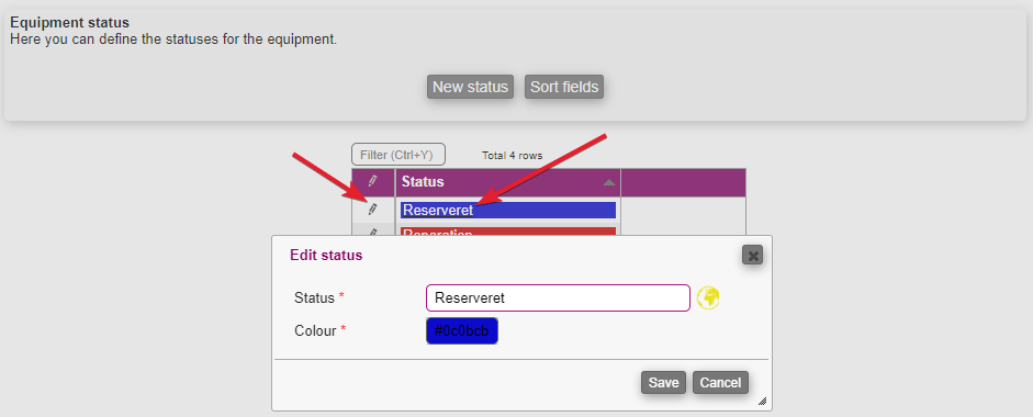 Editing a status happens on the same menu. Just click on the pencil or directly on the title to enter edit mode.