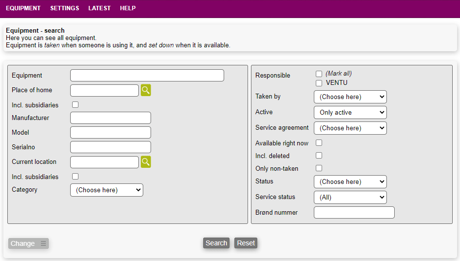 To assign the status to a piece of equipment, you just need to edit the equipment object as explained here.