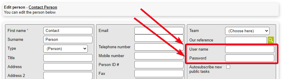 In order for a person to get access to the Extranet the following fields of a Personobject must be filled out: