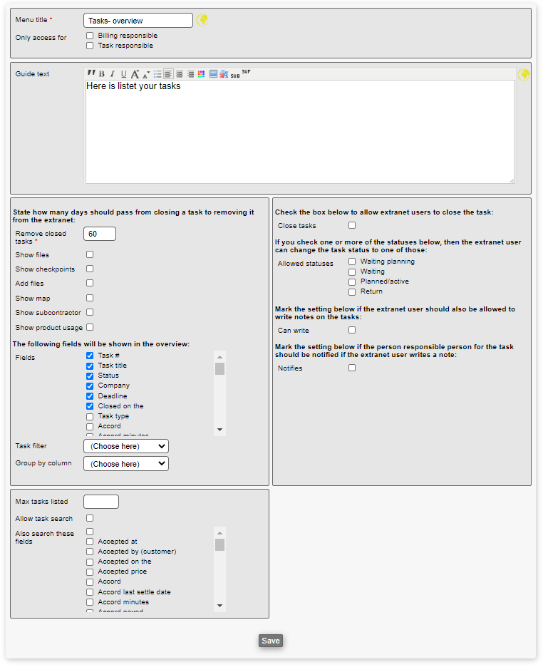 - Remove closed tasks: Select how many tasks are listet before there are removed