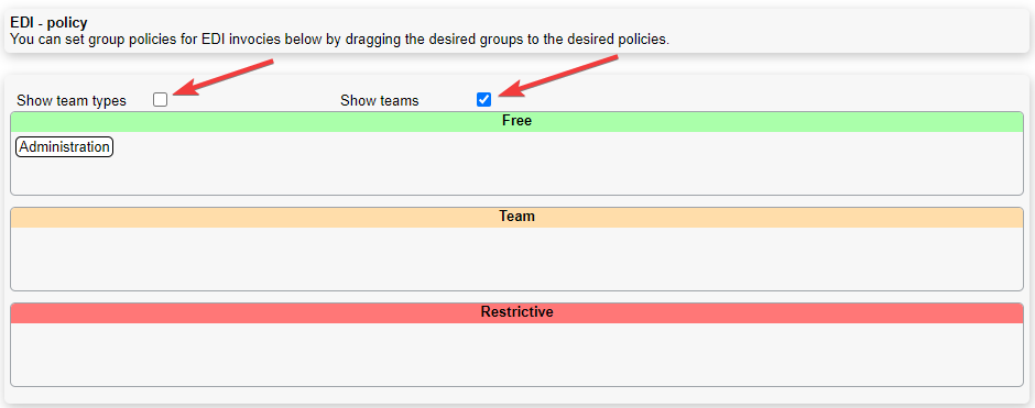 Policies in the settings for EDI affects the list of EDIs a given team type or team is allowed to see. The three different options have the following effect: