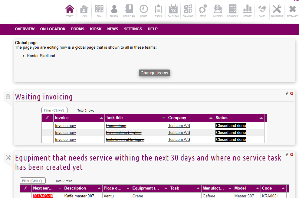 The most important configuration is the configuration of how invoice lines are exported. This is setup in the menu CONFIGURATION > EXPORT METHOD in the Invoice module, but if you are using an integration like Economic or C5 or Proforma etc, then this is handled automatically by the integration. Without an integration you will have to configure the export method as described here: Export method .