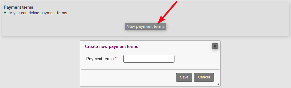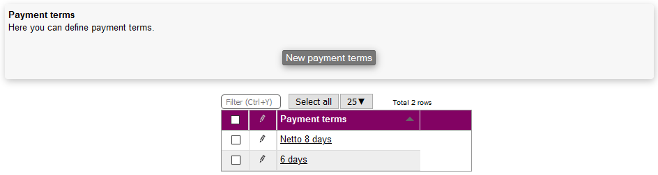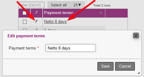 Editing a payment term happens on the same menu. Just click on the pencil or directly on the title to enter edit mode.