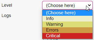 The log level selector should largely be ignored; it filters out lines that have a log level higher than the selected one, so if you select "Warning" then you won't see lines with level "Errors" or "Critical". When choosing ex. "Warning", only logentries of this sort is shown.
