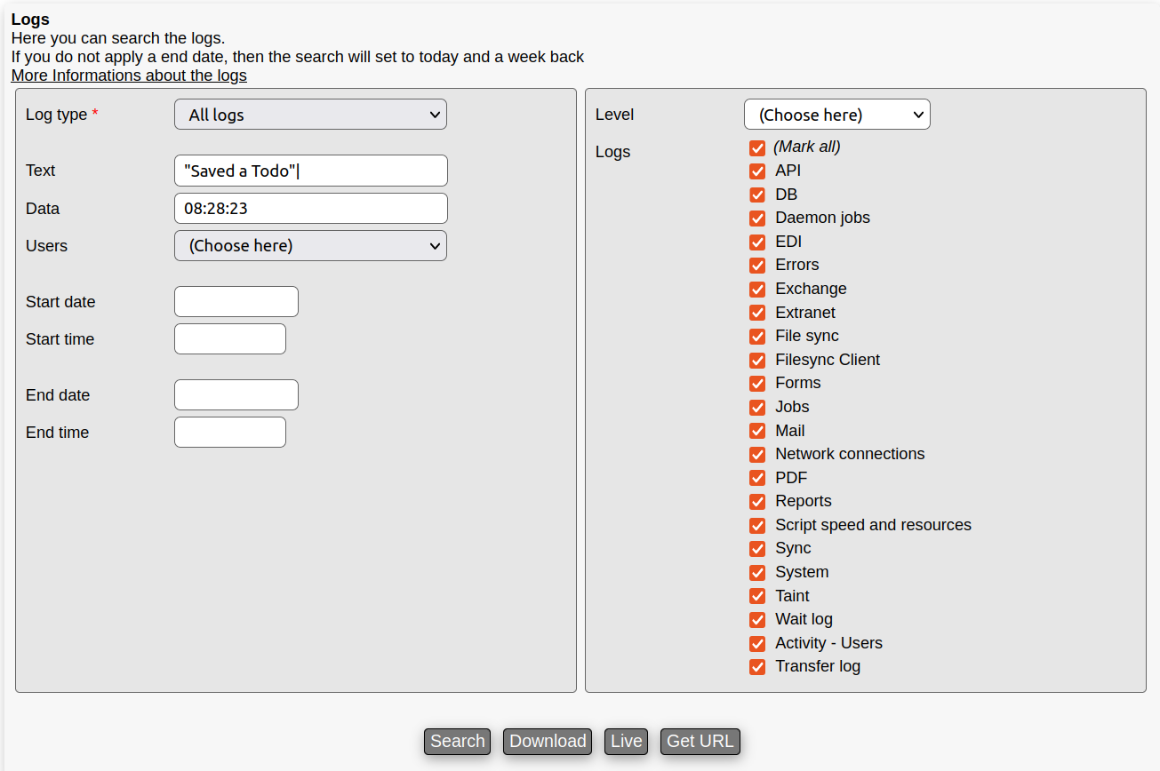 End date | The system will download all chosen log files until this date. |
