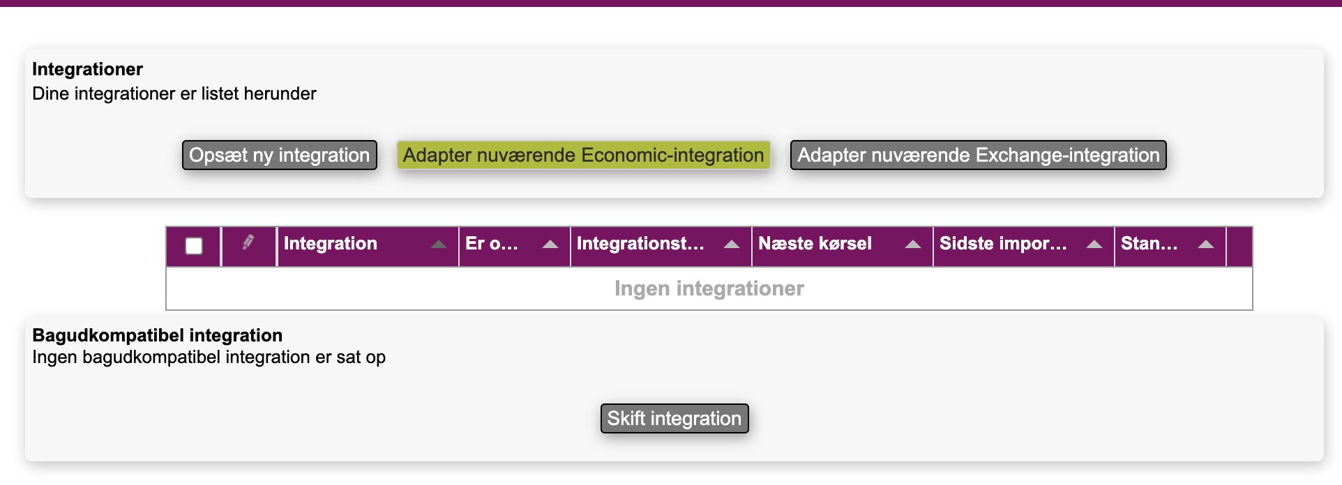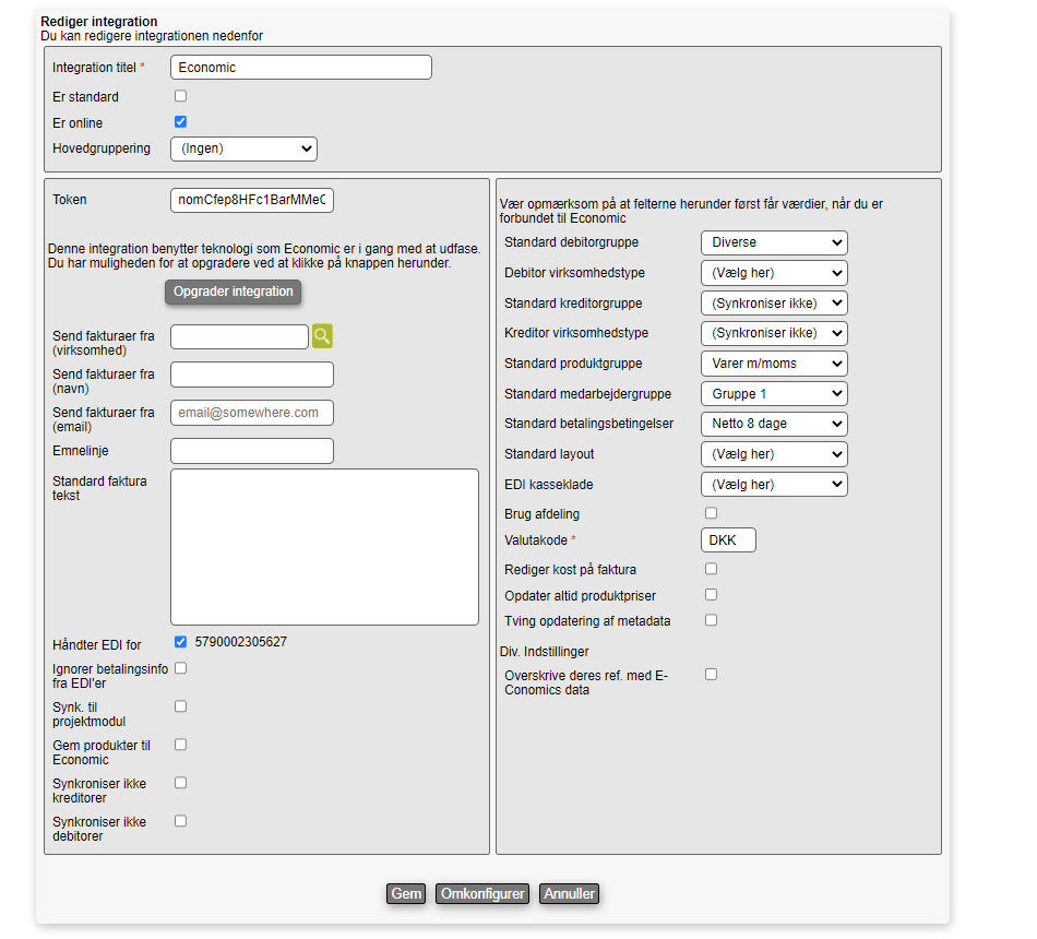 Klik "Adapter nuværende E-conomic integration"