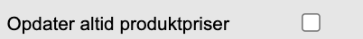 Såfremt man vil have synkroniseret priser fra E-conomic til Microbizz på produkter, så skal følgende indstilling slås til: som findes under https://systemX.microbizz.dk/sys/basic/integrations/ (udskift X med jeres server) → Rediger E-conomic integrationen via hvorefter du finder indstillingen i højre sektion