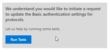 - I søgefeltet indtast følgende frase: Diag: Enable Basic Auth in EXO.