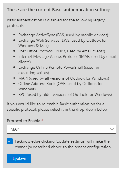 Vi arbejder stadig på en teknisk løsning, som understøtter Microsofts begrænsninger og forventer at have en sådan klar i januar 2023. I mellemtiden kan man i Office365 foretage en indstilling som midlertidigt forlænger Microbizz' mulighed for at logge på ens mailkonti.