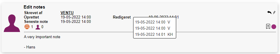 In the last release we removed the possibility of editing notes that had been created by others. By popular demand we have reintroduced that possibility, but if you hold the mouse pointer over the "Edited" field you can now see who has edited the note, and when.