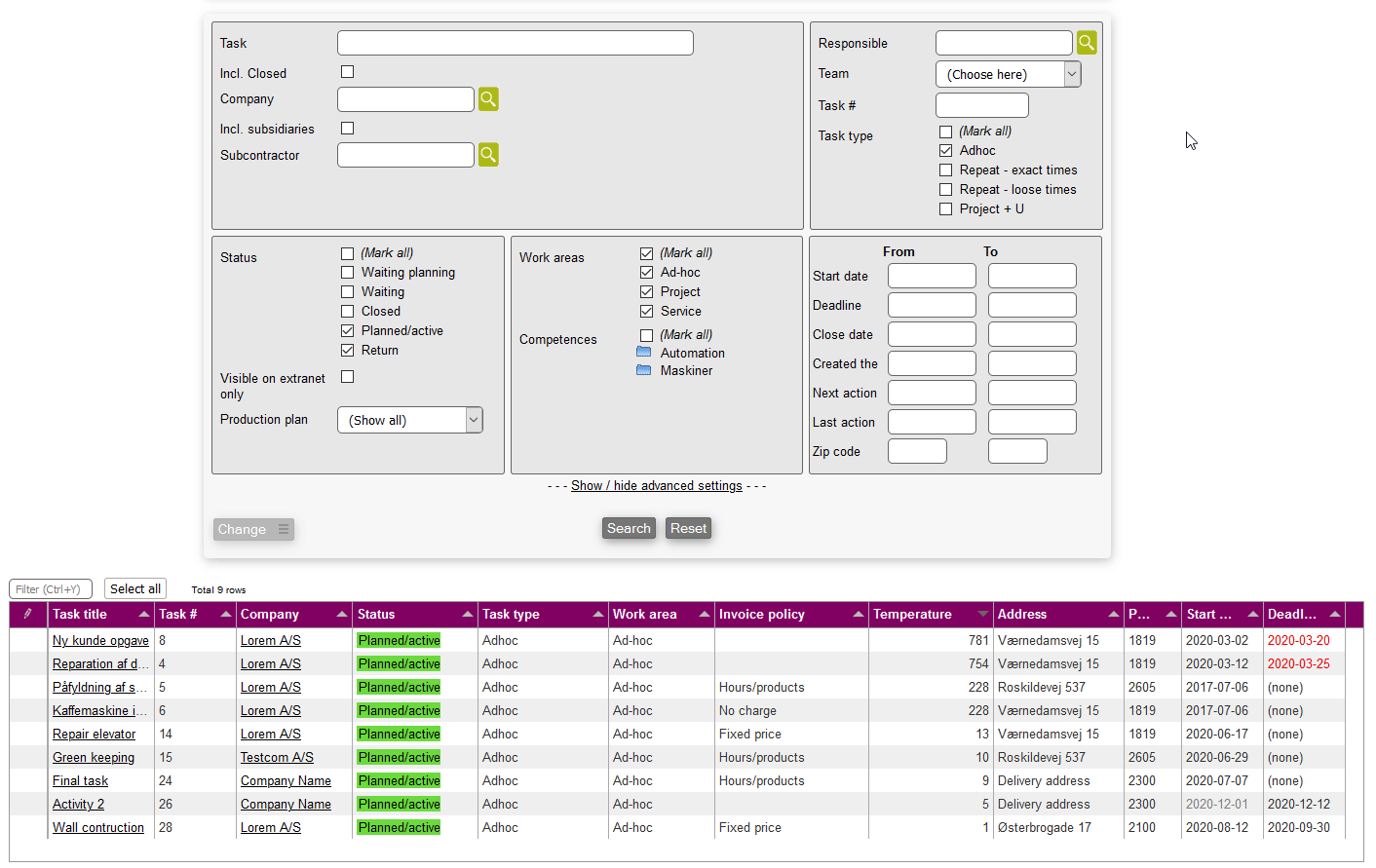 Now you can simply choose one, more or all tasks in a search result, and then do the following: