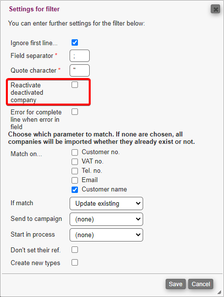 We have adjusted the company import filters so that the automatic reactivation of deactivated companies only happens if the correct option is selected.