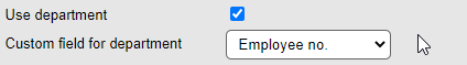 When using the department option in Economic, it is now possible to set a department for each user. This is done by either using an existing field or creating a new custom field for the purpose. The field is then selected in the "Custom field for department" section when setting up your Economic integration. You need to check "Use department" to make the field visible.