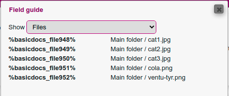 You may now include picture in the PDF templates. The pictures should be stored with the other files in the he Setup module, in DOCUMENTS > FILES. The files then become available in the "field guide" when editing the fields in the PDF.