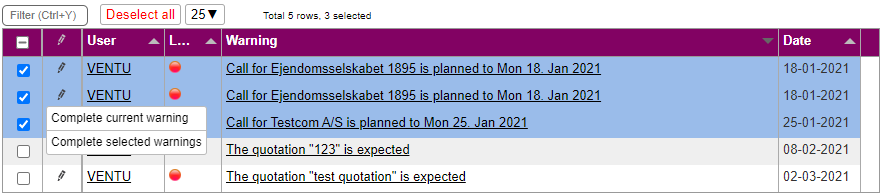 We now have the ability to select multiple warnings and mark them as completed.